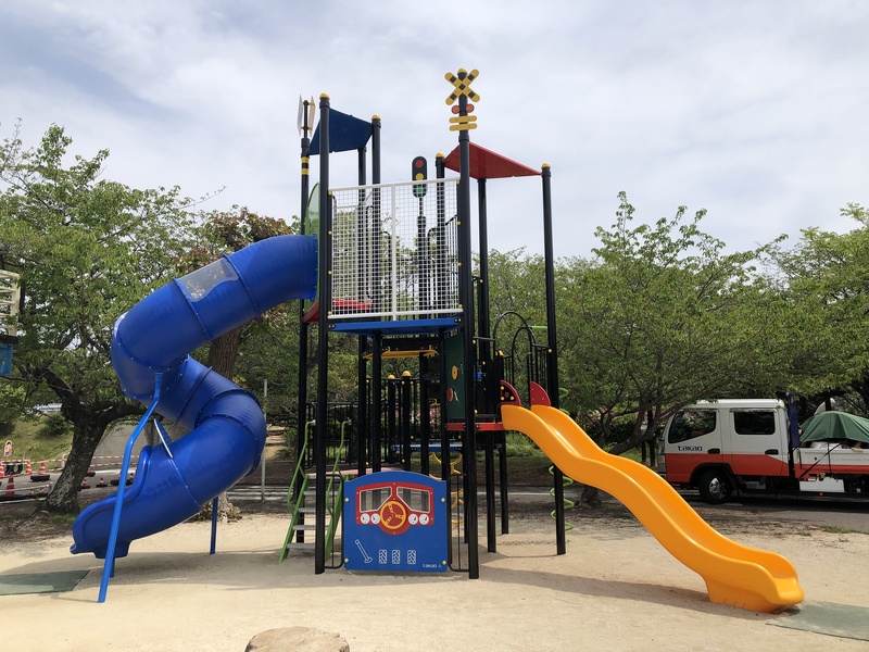 比島交通公園の各種遊具と砂場の改修工事をお手伝いさせて頂きました。改修後の入園者は予想以上で天気の良い日は平日でも約1,000人、土日ともなると約2,000人で推移しており駐車場が満杯で入れないこともあるそうです。(令和4年4月18日現在)